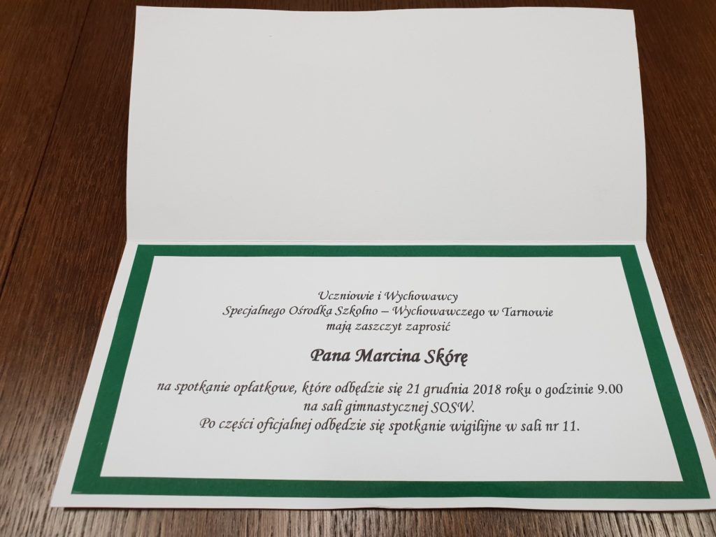 Bezpośrednio po Jasełkach, przedstawiciel firmy EMES I PARTNERZY, miał zaszczyt uczestniczyć w tradycyjnej Wigilii. Ponadto w ramach naszego najnowszego i najważniejszego kontraktu (datowany na 06 grudnia 2018 roku), działając na zlecenie GWIAZDKI i ŚWIĘTEGO MIKOŁAJA, dostarczyliśmy mały drobiazg prezentowy, który mamy nadzieję, będzie podobał się Wychowankom SOSW jak również będzie przydatny w pracy dydaktycznej dla ich wspaniałych Opiekunów.