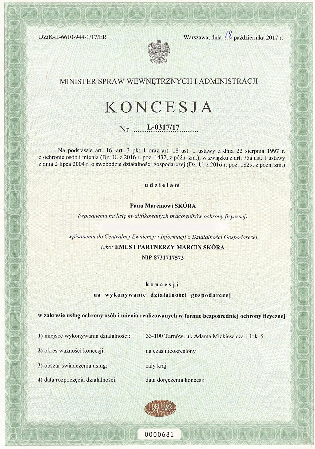 Strona główna Koncesja na ochronę osób i mienia