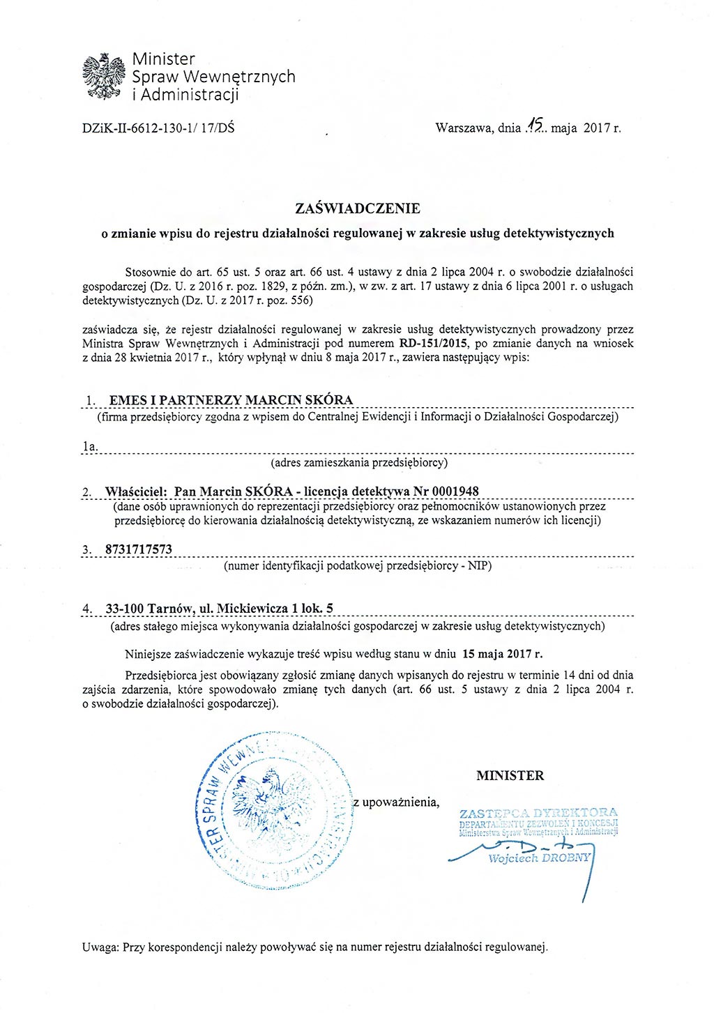 Posiadamy koncesję na ochronę osób i mienia oraz na prowadzenie usług detektywistycznych ZOBACZ